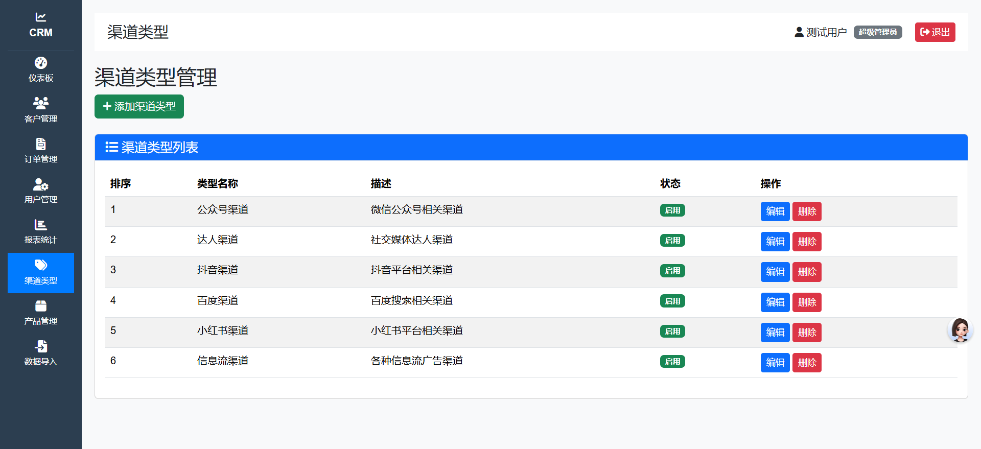 多渠道客户来源管理,支持公众号、达人、抖音等多种渠道类型。