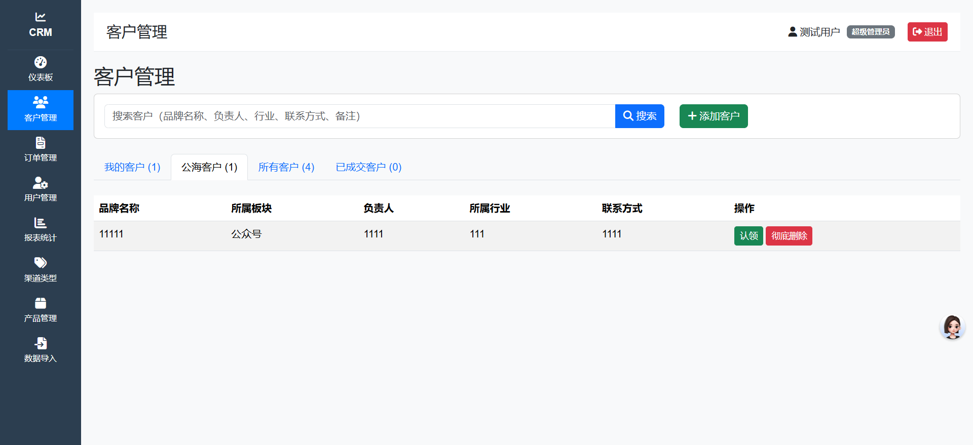 本CRM系统是一个功能完整的客户关系管理平台,采用PHP + MySQL技术栈开发, 支持本地化部署,无用户数限制,具备现代化的用户界面和强大的后台管理功能。